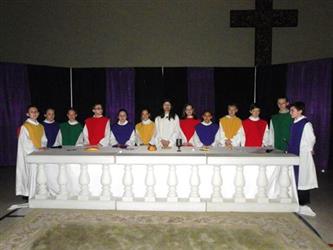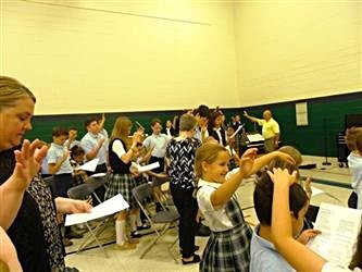 A new dimension has been added to our liturgy choir! Under the direction of Mr. Joe Martorano, several students have learned to play the hand bells. The participants give up their recess time to practice. Their efforts lend a special resonance to the beautiful voices of our liturgical choir. We are very proud of all of the students who enhance our worship with music and song.