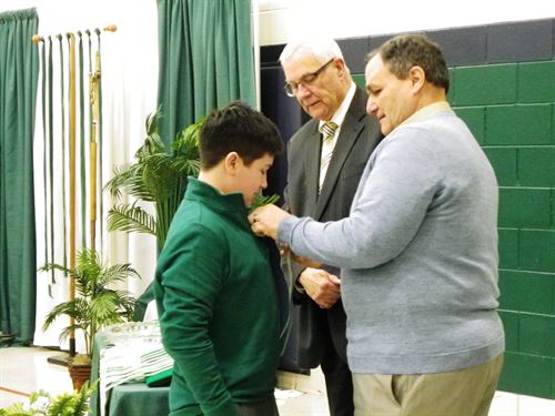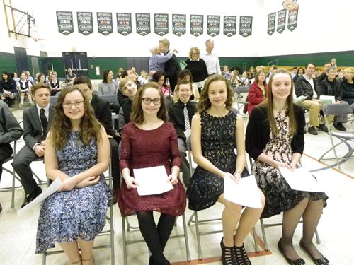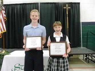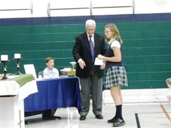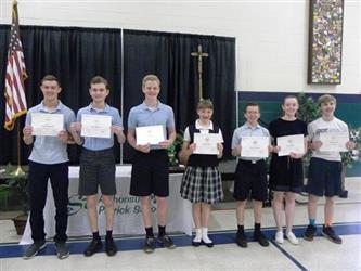 On Thursday, May 31 we took the time for an awards ceremony for all of our students and especially for our graduating students. Students were honored for their participation in our various service organizations including the Worship Commission, Liturgy Choir, Altar Servers, Student Council, Mission Club, the National Junior Honor Society, the Academic Bowl Teams, and the Yearbook Committee. Three eighth grade students were awarded the Citizenship Award for their outstanding and constant display of all of the qualities that make a good citizen. Those honorees were Luke A., Ryan E. and Julia P. Two other 8th graders, Scarlett O. and Ian M., received the Celtic Award. This award is symbolic of their continuous commitment to our Celtic Mission.