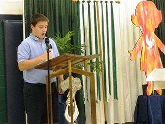 During the Liturgy on Friday, September 8, the eighth grade class pledged to use their gifts and talents to lead and to carry out the Celtic Mission. They prepared for this commitment by reading and listening to speeches by prominent Americans and leaders of our Church; they examined the characteristics of effective leaders. Although they know that they are still learning, they pledged to do their best to be leaders for the school and for their younger classmates.