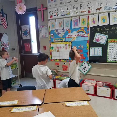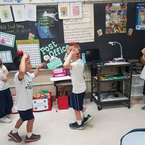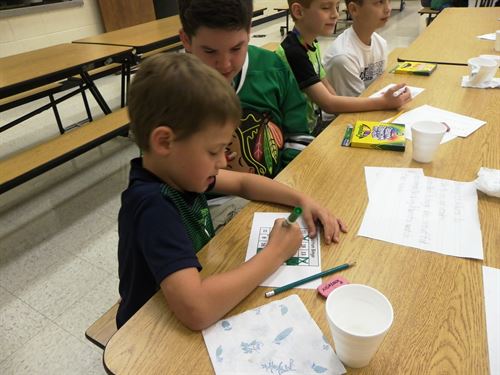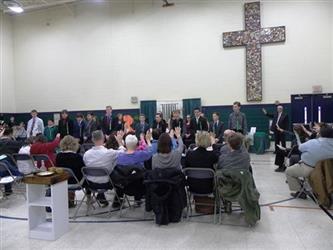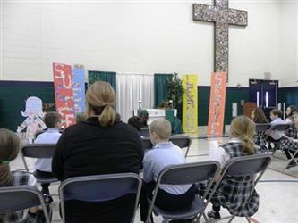 On Wednesday, November 8, 2017, we honored our veterans with a prayer service and reception at our school. We were so pleased to welcome several members of the Lemont VFW Post #5819 and other veterans. Several students read from their Patriot's Pen Essays, the drama club did a reprise of a patriotic song from last year's play, and all prayed with and blessed the veterans in attendance.