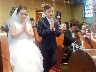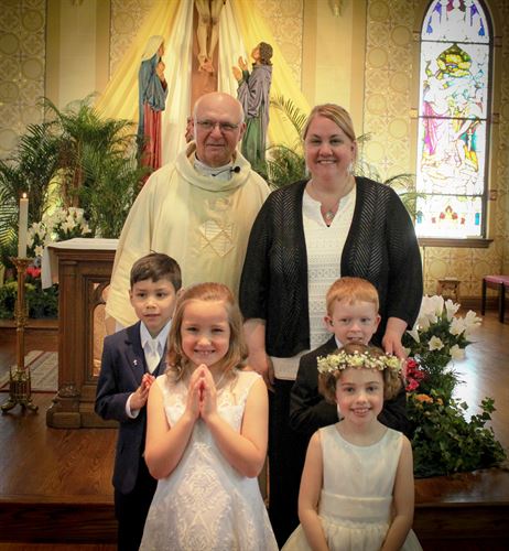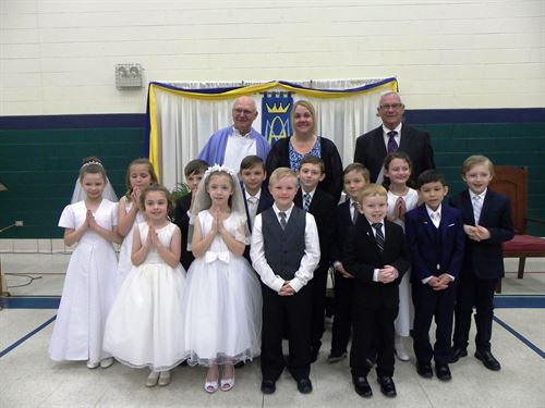 The month of May calls for special dedication to Mary, the mother of Jesus and inspiration to us all for her willingness to say Yes to God’s plan for her. As part of the celebration of Mary, St. Alphonsus / St. Patrick students crowned Mary during Mass on Friday, May 11. Eighth grader Bridget had the honor of crowning Mary. She was supported and assisted by 8th grade classmates Regan, Ashley, Ethan, Tyler and Ryan S., as well as the second grade students who recently celebrated their First Holy Communion.