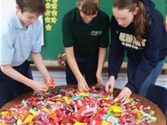 Also connected to our salute to those who protect and defend our freedoms was the traditional National Junior Honor Society Treats for the Troops Collection. Our National Junior Honor Society collected Halloween candy from students. The candy was then delivered to Shorewood Family Dental who generously shipped the candy to Operation Gratitude. Operation Gratitude sends care packages to our soldiers overseas. Thanks to the generosity of St. Al's-St. Pat's students, five large boxes of candy were donated. Many students also wrote cards and letters to the soldiers and those were also sent along with the candy treats!