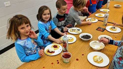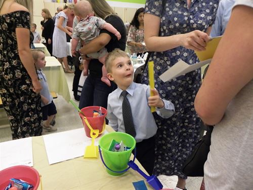 Under the direction Kindergarten teacher Mrs. Fleming and Preschool teacher Mrs. Horn and her assistant, Mrs. Turner, the children presented many songs and some recitations. Each child walked across the stage to receive their diploma and to be welcomed by their next year’s teacher. At the reception that followed the ceremony, the children were happy to share their joy with loving family members.