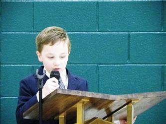 Participants competed in several subject areas including Language Arts, Social Science, Science, Mathematics and Geography. Students earned personal scores in each subject area, which were tabulated and compared to their peers. An award presentation took place following the competition. Trophies were awarded to the top four teams at both grade levels, as well as to the top five individuals in each subject area. Our team members also brought home several individual awards. On our sixth/seventh grade team, Max took first place in Science and Caleb won third place in Mathematics. Eighth graders also placed individually. Ian won first place in Science, Luke took third place in Social Science, and Alex placed fourth in Mathematics.