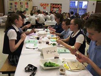 Many beautiful Lenten traditions at our school prayerfully add to the meaning and significance of the season. These include the Seder meal for the 6th, 7th and 8th graders, the dramatization of the Last Supper presented by the 5th grade and the living Stations of the Cross presented by the 8th grade.