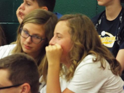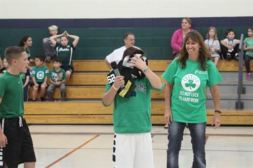 Celtic Spirit rocked the house on Friday, November 29, as the whole school gathered in the gym to cheer for our Fall athletic teams. All of the Volleyball, Cross Country and Football team members came out to be recognized by their fellow students. Celtic pride was evident everywhere and the spirit meter was on high! Each class participated in our Celtic cheer, and a volleyball “keep it up” contest. The 8th grade class was able to keep passing a volleyball for 112 times-----it was an amazing display of Celtic Teamwork! Finally the whole school played Four Corners with eighth grade corner callers Ethan and Brayden. Both winners were seventh graders named Nick!