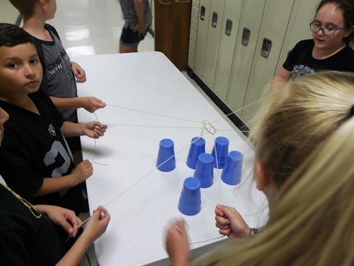 Seventh grade students have been reinforcing their science skills. They used the scientific method to predict, measure and observe the mixing of two unknown liquids. They also learned that a scientist does not set out to prove a hypothesis but rather to test it, and that sometimes the results just don't seem to add up. When combining 25 milliliters of liquid A and 25 milliliters of liquid B, they should have observed that the final volume did not equal 50 milliliters.