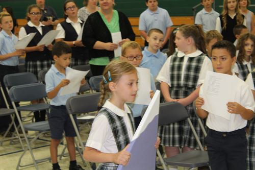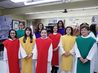 On Wednesday, December 12, the children in Kindergarten through the fourth grade and the Liturgical Choir presented a Christmas choral concert for their parents and friends. Under the direction of Mr. Joe Martorano, the students sang a program of Advent and Christmas music designed to highlight the true meaning of the Christmas season and also treated their audience to many lighthearted familiar Christmas songs. The lovely melodies and significant lyrics helped add meaning to our Advent of waiting for the Christ child. The musical talents of our students helped to spread joy and the Christmas spirit.
