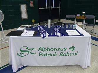 On Friday, September 21, the St. Alphonsus/St. Patrick School Chapter of the National Junior Honor Society inducted three new members. Our Principal, Mr. Priest and the NJHS advisors, Mrs. Teri Lerch and Mrs. Denise Cunningham, along with the current members, welcomed the new inductees in a formal ceremony that celebrated the qualities that are the hallmarks of the society. Student members resolved to carry out the five pillars of Character, Scholarship, Leadership, Service, and Citizenship. The new inductees included seventh graders Lia A., Jeremy D., Sophia F., Grace G., Tess O., Jackson O., Matthew O., and Anne P. They were ushered into the NJHS by our existing eighth grade members Caleb B. and Jacquelyn Kroll. We are very proud of these hard-working students and know that they will accept the responsibilities that come with having talents.