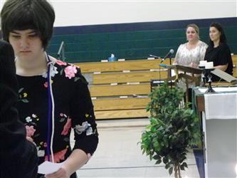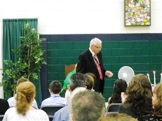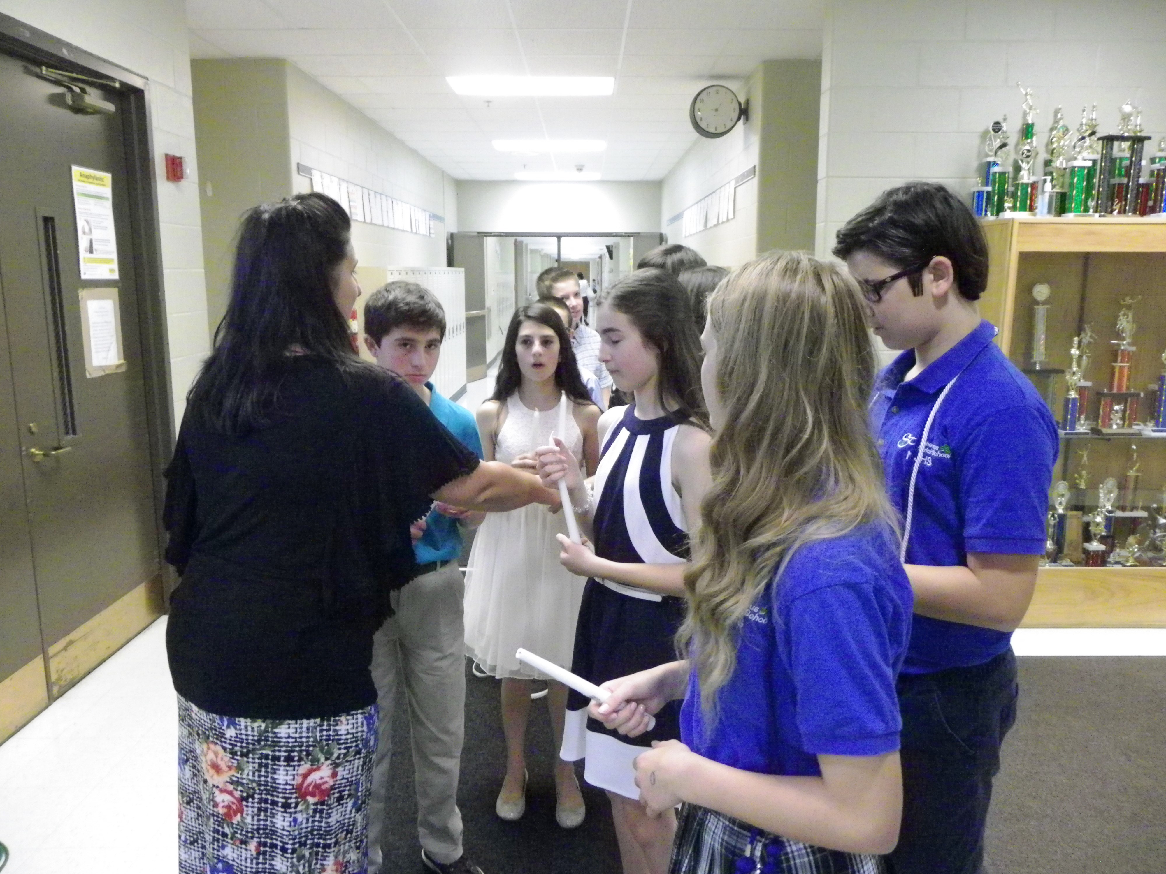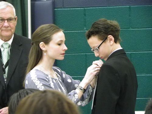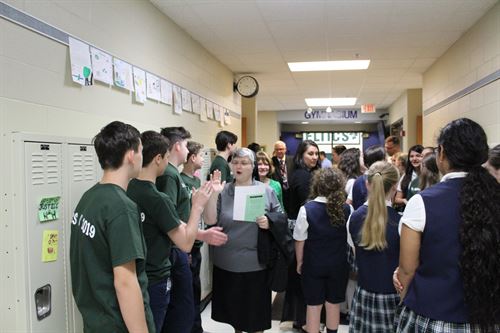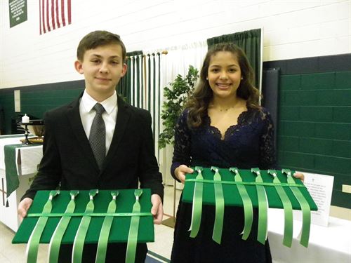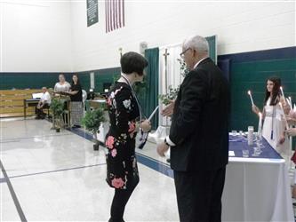 True to the mandate given to these young people during their induction, our NJHS students strive to be "servant leaders". NJHS members work throughout the year to foster the touchstones of NJHS by sponsoring projects that benefit the community, our parishes, and St. Alphonsus/St. Patrick School. The keynote speaker during the ceremony was Mrs. Terri O’Neill-Borders from the Lemont Hope & Friendship Foundation. She related the mandate of the National Junior Honor Society to the directive from Jesus that we provide help and kindness to other human beings. Ms. O’Neill-Borders concluded her address with an assignment to the NJHS members……she had been given 10 beautiful handmade quilts with a request that they be given to persons who would benefit from them as a sign of care and love. The NJHS students are charged with helping to find those ten individuals. We are confident that these exemplary students will take this and other tributes to the pillars of NJHS seriously.