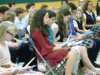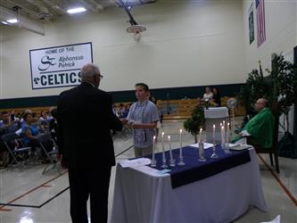 During the Liturgy on Friday, September 14, the Class of 2019 pledged to use their gifts and talents to lead and to carry out the Celtic Mission. They prepared for this commitment by reading and listening to speeches by prominent Americans and leaders of our Church; they examined the characteristics of effective leaders. Although they know that they are still learning, they pledged to do their best to be leaders for the school and for their younger classmates.