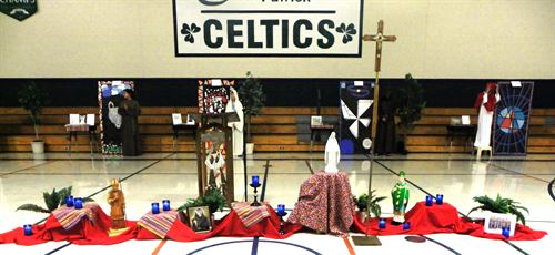 On Friday, October 26, the gymnasium underwent a miraculous transformation and became a reverent worship space just as it does for our all school liturgies. This time, however, it became a hallowed hall of holy saints.